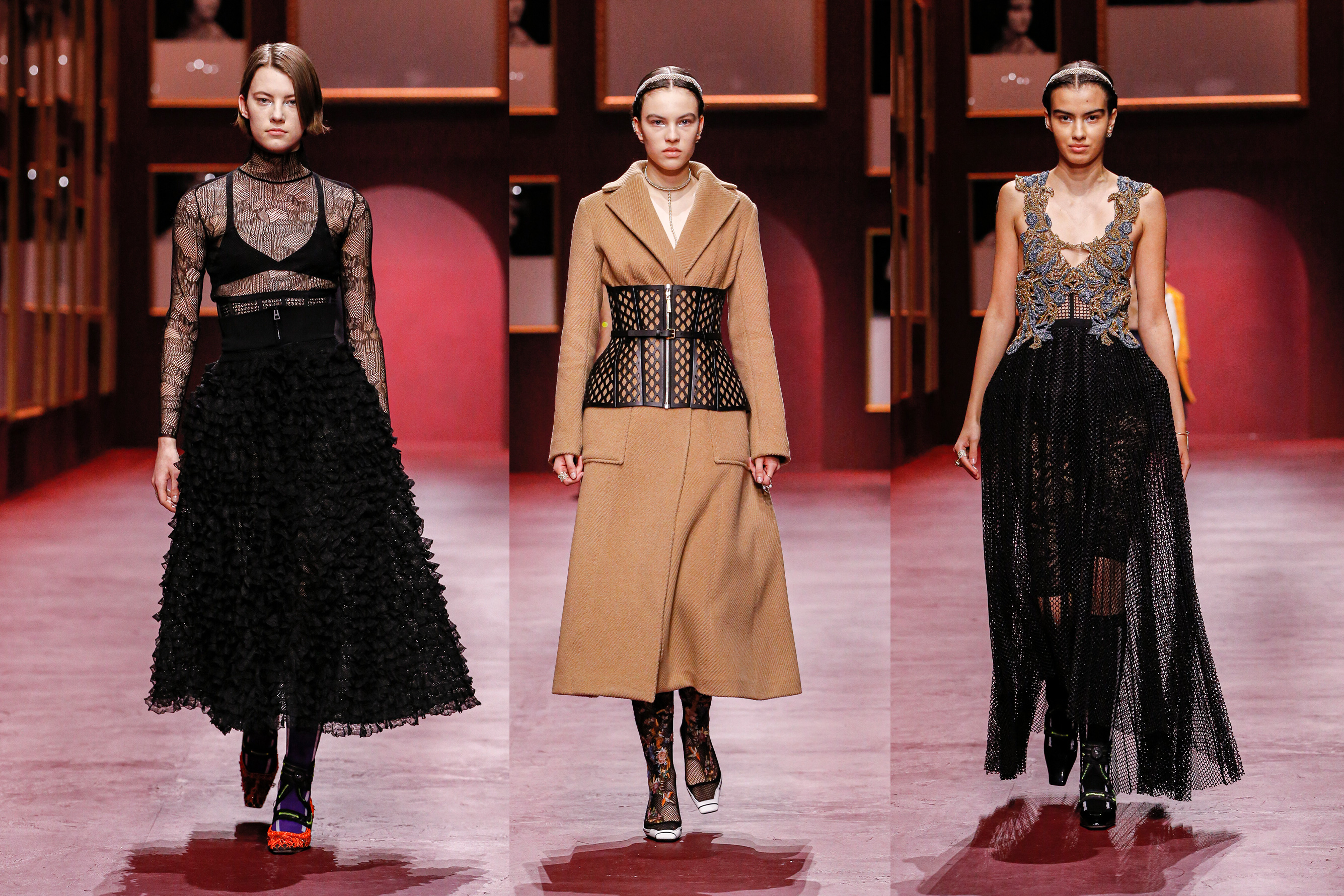 The Next Era* is the title of the work Mariella Bettineschi imagined for the Dior ready-to-wear fall-winter 2022-2023 show, wherein the Italian artist proposes a gallery of paintings composed of large-scale portraits of women from the history of painting from the 16th to the 19thcentury. Their cut up, stacked eyes question the judgment that has conditioned – and still conditions – women past and present. The gaze is reversed to suggest another reading of art history. This “framework” of the fashion show breathes life into Maria Grazia Chiuri’s concepts; notably (re)constructing a performative relationship between the body and the garment in a technical, aesthetic perspective, in a succession of operations associating forms, savoir-faire, materials and futuristic technologies.
